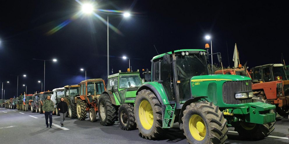 Με περισσότερα από 200 τρακτέρ ενισχύθηκε το μπλόκο της Νίκαιας, με αγρότες και κτηνοτρόφους να δυναμώνουν την παρουσία τους στον κόμβο, όπου η Εθνική Οδός παραμένει κλειστή.