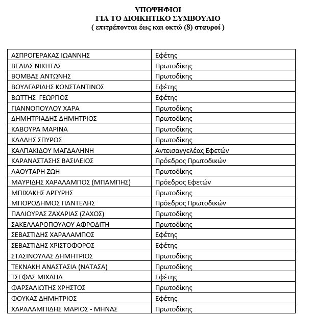 - Ανακηρύχθηκαν για τις αρχαιρεσίες στις 10 & 17 Μαΐου 2026 ως υποψήφιοι οι παρακάτω:
