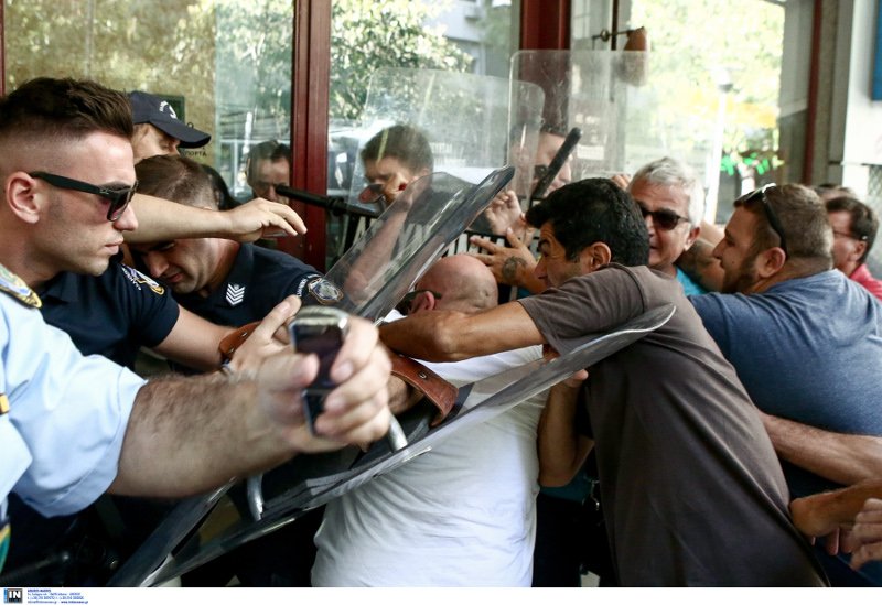 Φωτογραφίες από τη ένταση μεταξύ αστυνομικών και μελών του ΠΑΜΕ σε πλειστηριασμό