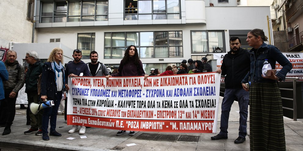Τα γραφεία βρίσκονται στην οδό Χίου στο Μεταξουργείο, κατά τη διάρκεια συγκέντρωσης διαμαρτυρίας για τις συνενώσεις τμημάτων στα σχολεία της περιοχής.