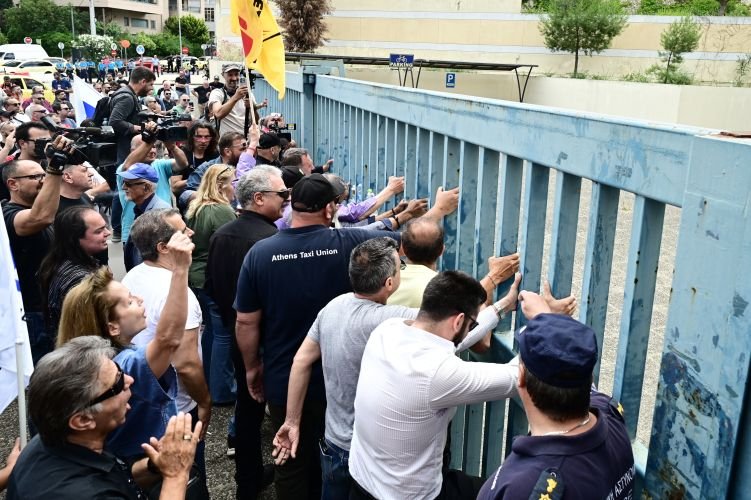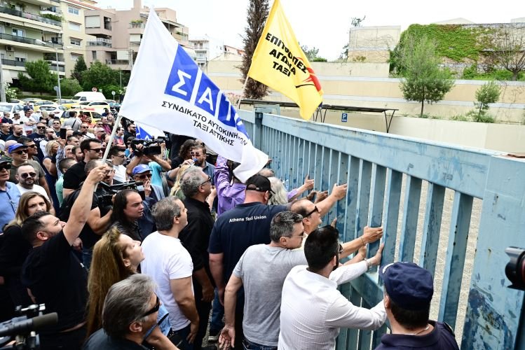 Ένταση επικράτησε έξω από το υπουργείο Μεταφορών, όπου ιδιοκτήτες ταξί ζητούν συνάντηση με τον Κωνσταντίνο Κυρανάκη, με την ηγεσία του υπουργείου να αποκλείει τον πρόεδρο του ΣΑΤΑ, Θύμιο Λυμπερόπουλο.