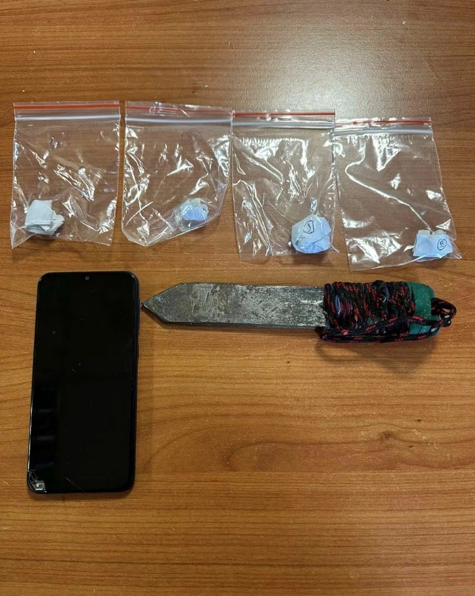 Επιπλέον, από σωφρονιστικούς υπαλλήλους, σε αίθριο χώρο, βρέθηκαν και κατασχέθηκαν τέσσερα αυτοσχέδια δέματα (συσκευασία καπνού, σακούλα και δύο συσκευασίες κουτιών γάλακτος) που περιείχαν συνολικά: