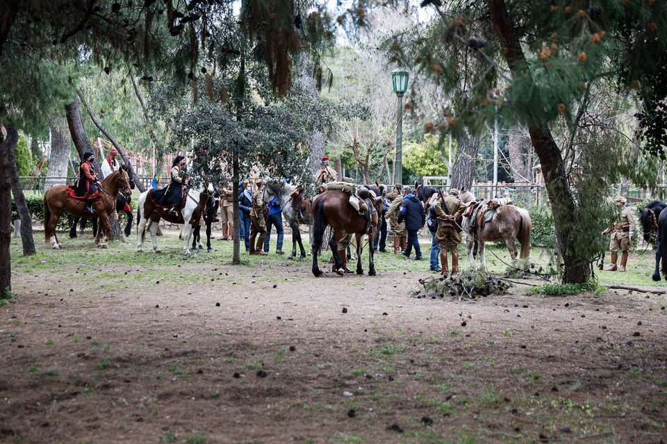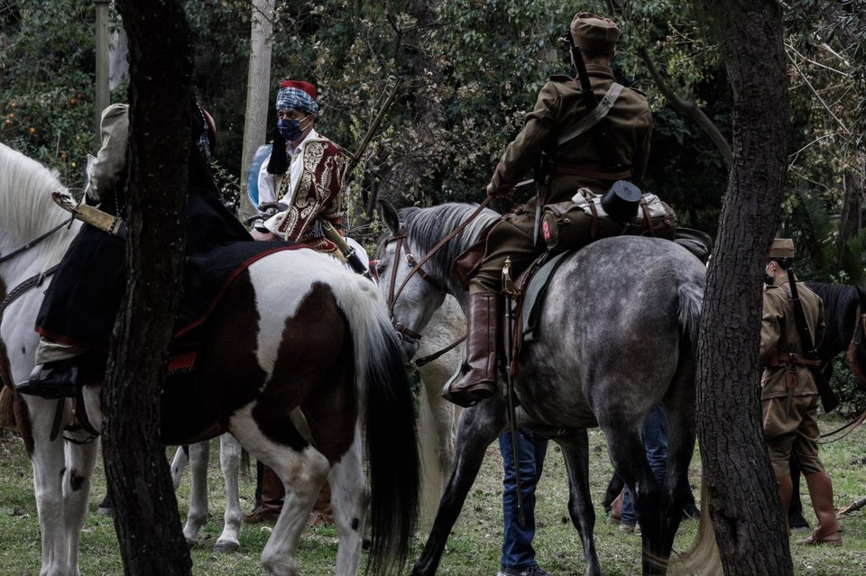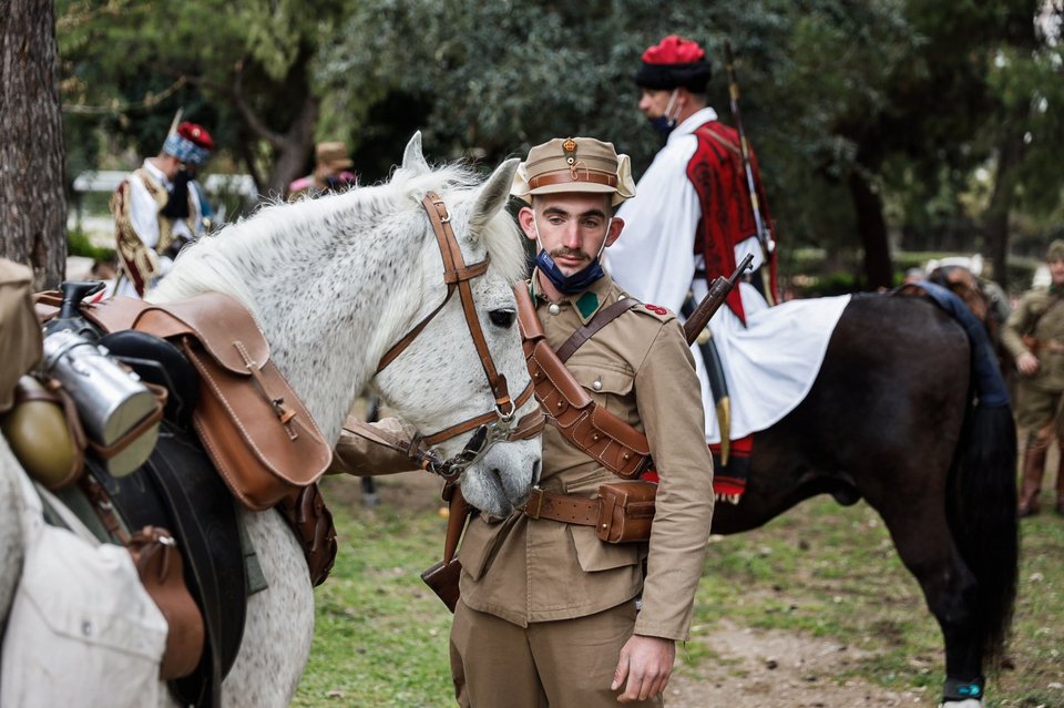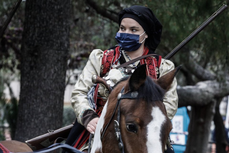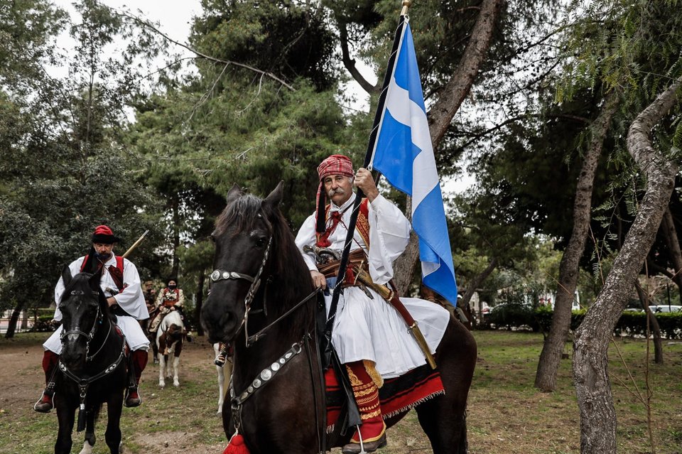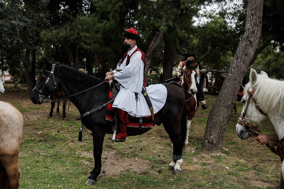 Τους έφιππους, μάλιστα, πλαισιώνουν ομάδες ατόμων που φορούν παραδοσιακές στολές από τον Πόντο και την Θράκη μέχρι την Κρήτη, ενώ στα πλάνα διακρίνεται και ένα πεζοπόρο τμήμα που αποτελεί την αναβίωση του ιστορικού Ιερού Λόχου του Αλέξανδρου Υψηλάντη.
