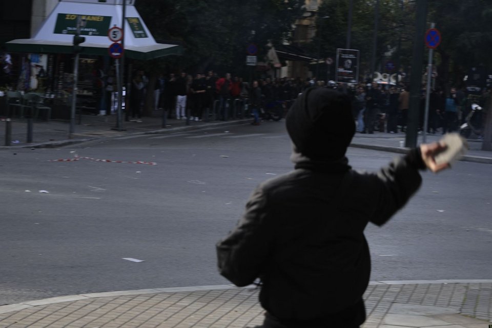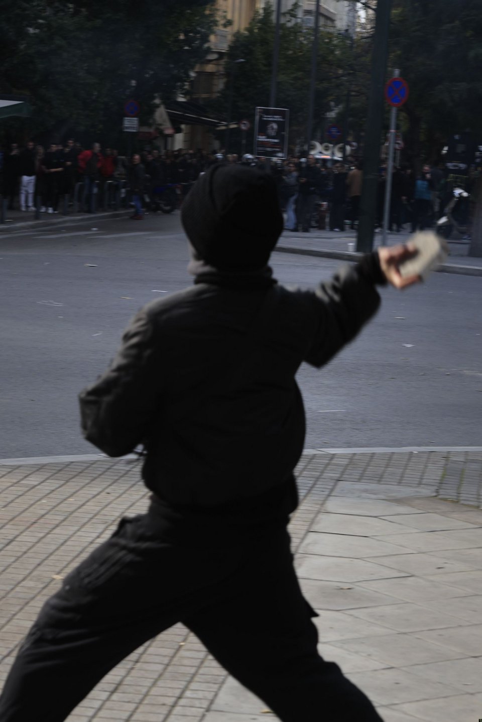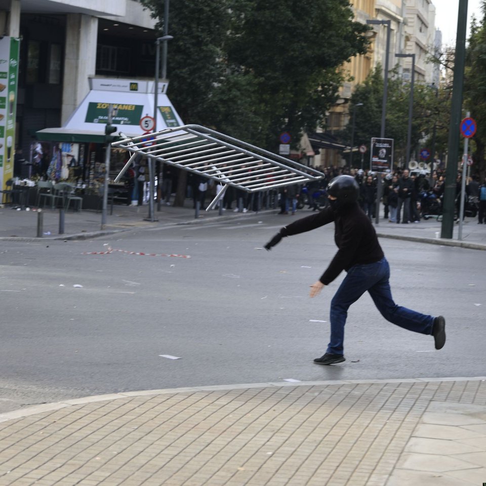 Στη συνέχεια, σύμφωνα με την ΕΛΑΣ, η ομάδα των αντιεξουσιαστών κατευθύνθηκε στην οδό Κολοκοτρώνη όπου έσπασαν μάρμαρα και τα πέταξαν στους αστυνομικούς. Για τα επεισόδια έγινε μία σύλληψη.