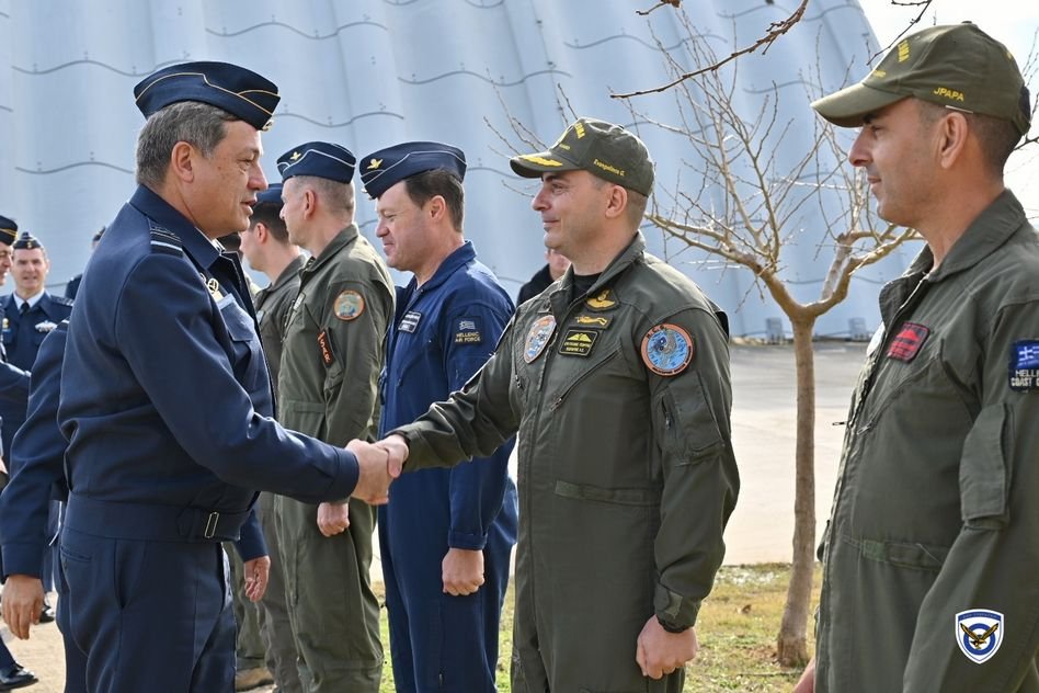 Όπως ανακοινώθηκε από το ΓΕΑ, τον αρχηγό ΓΕΑ, ο οποίος συνοδευόταν από τον αρχηγό Τακτικής Αεροπορίας αντιπτέραρχο (Ι) Παναγιώτη Γεωργακόπουλο, τον διοικητή Διοίκησης Αεροπορικής Υποστήριξης, αντιπτέραρχο (Ι) Απόστολο Χόρτη, καθώς επίσης και από τους διοικητές Μοιρών της 331 Μοίρας αντισμήναρχο (Ι) Θεοχάρη Κατσαρό και της 347 Μοίρας αντισμήναρχο (Ι) Αντώνιο Σταμάτη, υποδέχθηκαν οι διοικητές της 135 Σμηναρχίας Μάχης και 130 Σμηναρχίας Μάχης σμήναρχος (Ι) Γρηγόριος Δήμος και σμήναρχος (Ι) Ανδρέας Μπαλάφας, αντίστοιχα.