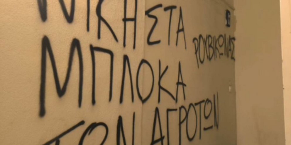 Σε βανδαλισμό των γραφείων της ΝΔ στη Λάρισα προχώρησαν μέλη του Ρουβίκωνα.