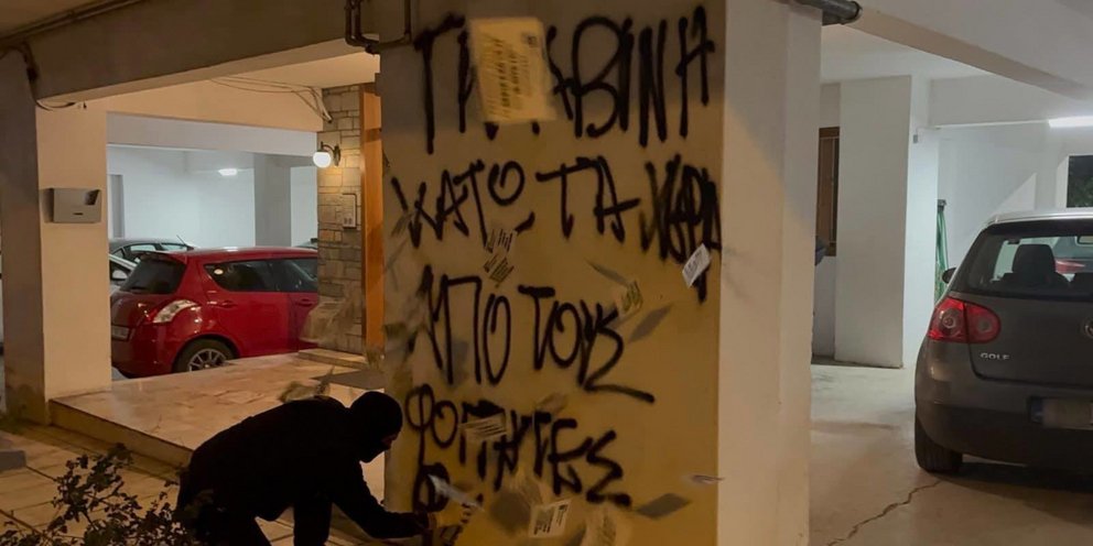 Επίθεση στο σπίτι του κοσμήτορα Νομικής του ΑΠΘ, Παναγιώτη Γκλαβίνη, στη Θεσσαλονίκη, εξαπέλυσαν μέλη του Ρουβίκωνα.