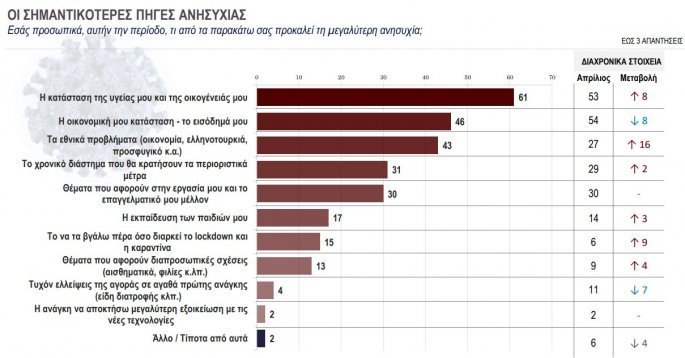 - Η ανησυχία για τον κορωνοϊό ξεπερνά τους φόβους για την οικονομία και αγγίζει τα επίπεδα του Μαρτίου-Απριλίου