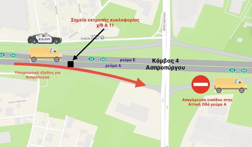 Επισημαίνεται ότι το τμήμα της Αττικής Οδού από την είσοδο της Ν.Ε.Ο. Αθηνών – Κορίνθου μέχρι και την έξοδο Ασπροπύργου (κόμβος 4), προορίζεται για την εξυπηρέτηση αποκλειστικά και μόνο των οχημάτων που επιθυμούν να κινηθούν προς την περιοχή του Θριασίου.