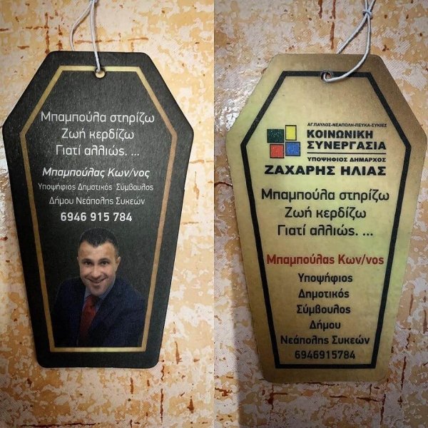 Ο εργολάβος κηδειών φτιάχνει και στιχάκια για την υποψηφιότητλά του με τον συνδυασμό του Ηλία Ζάχαρή.