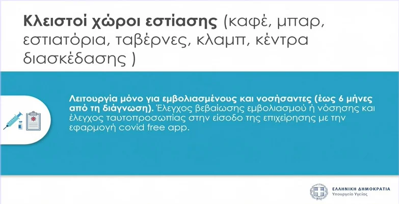 Οι κλειστοί χώροι της εστίασης θα λειτουργούν αποκλειστικά και μόνο για εμβολιασμένους πολίτες.