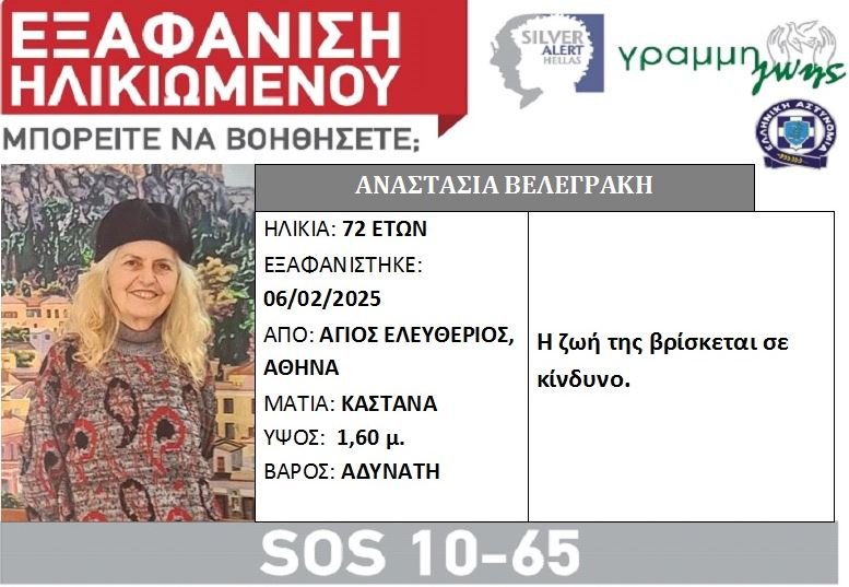 Σε θρίλερ εξελίσσεται η εξαφάνιση της εύπορης εικαστικού Αναστασίας (Στάσας) Βελεγράκη.