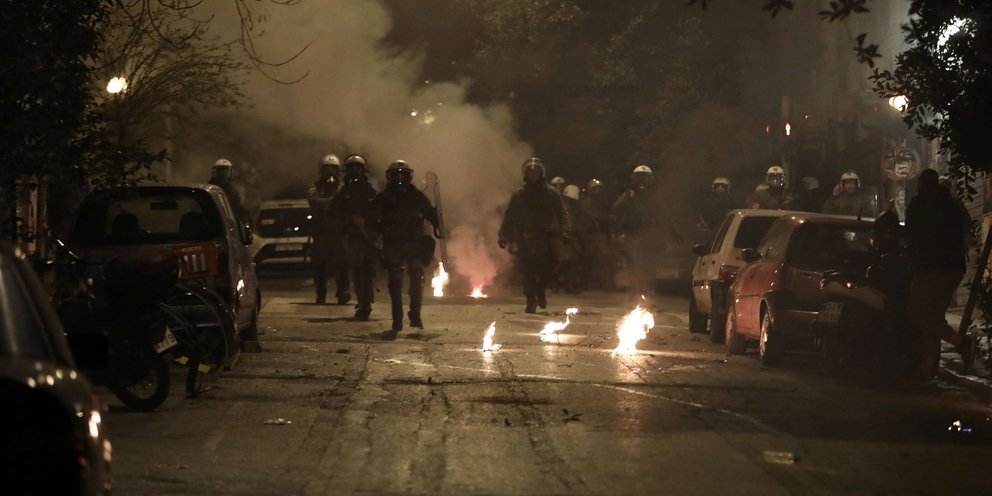 Ένταση επικράτησε τα ξημερώματα της Τρίτης στα Εξάρχεια, όταν άγνωστοι επιτέθηκαν με βόμβες μολότοφ κατά διμοιρίας των ΜΑΤ.