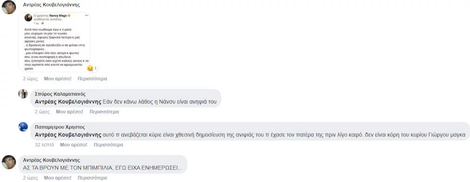 Στο facebook μπορούμε να διαπιστώσουμε για ποιον λόγο ο Ανδρέας Κουβελογιάννης έκανε αυτή την ανάρτηση. Όπως διαβάζουμε σε σχετικές δημοσιεύσεις, ο ίδιος διάβασε όσα έγραψε μια κοπέλα που αναφέρεται ως η ανιψιά του μουσικού, η οποία θρηνούσε τον πατέρα της. Ο ίδιος θεώρησε ότι είναι η κόρη του Γιώργου Μάγκα, και όχι η ανιψιά, και έτσι υπέθεσε ότι νεκρός είναι ο γνωστός μουσικός.