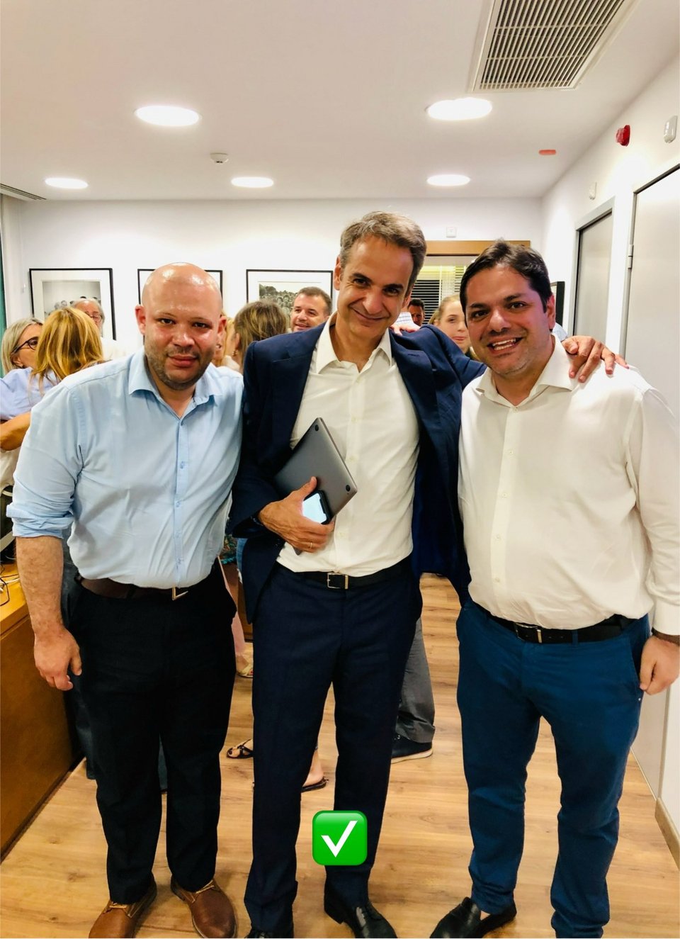 Επειδή, όμως, το ψέμα (πρέπει να) έχει «κοντά ποδάρια», ανατρέχοντας στο αρχείο μου, βρήκα την πραγματική φωτογραφία: Στη φωτογραφία αυτή -που εύκολα διαπιστώνεται η γνησιότητά της- είναι ο Κυριάκος Μητσοτάκης με εμένα και τον Δημήτρη Παπαγγελόπουλο στο γραφείο του, στα κεντρικά της ΝΔ, το βράδυ της 7ης Ιουλίου 2019, όταν η Νέα Δημοκρατία κέρδισε τις εκλογές. Να το θυμόμαστε πάντα, ιδίως την σημερινή ημέρα: Η έγκυρη ενημέρωση δεν είναι εύηχο σύνθημα. Είναι θεμέλιο και προϋπόθεση Δημοκρατίας».