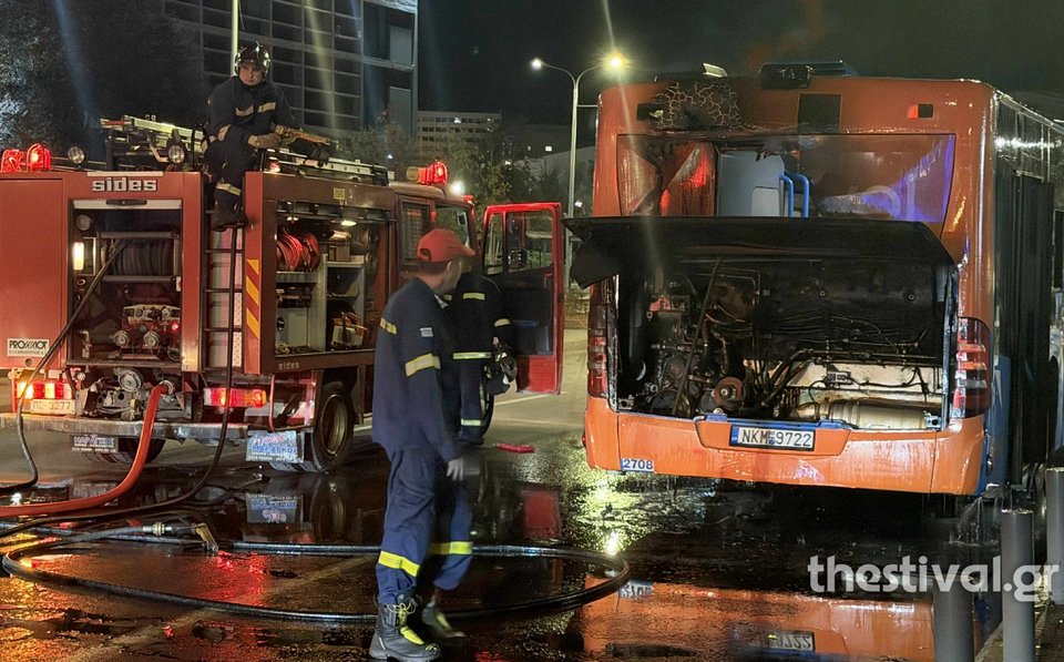 Φωτιά ξέσπασε σε αστικό λεωφορείο της γραμμής 11 του ΟΑΣΘ στο κέντρο της Θεσσαλονίκης το βράδυ της Κυριακής (23/11).