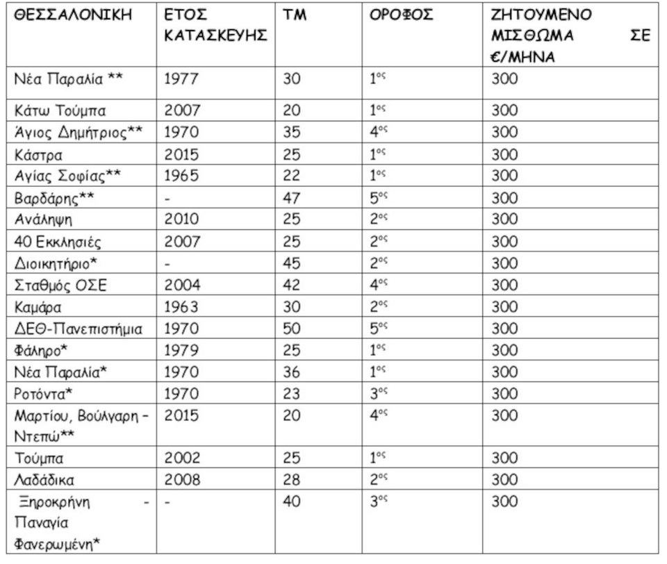 Παραδείγματα κατοικιών με ζητούμενο μίσθωμα έως 300€/μήνα στις περιοχές του κέντρου της Θεσσαλονίκης