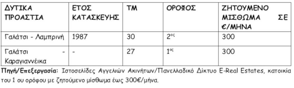 Παραδείγματα κατοικιών με ζητούμενο μίσθωμα έως 300€/μήνα στις περιοχές των Δυτικών Προαστίων