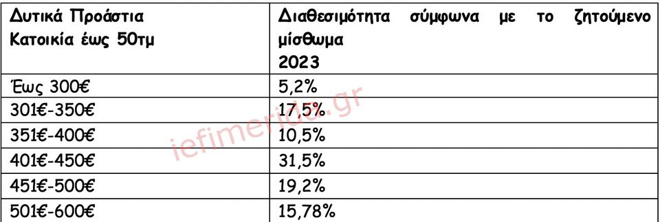 Συγκεκριμένα, στις περιοχές του κέντρου των Αθηνών, 7 στα 10 διαθέσιμα προς μίσθωση ακίνητα (άνω του 1ου ορόφου έως 50τμ) έχουν ζητούμενο μίσθωμα άνω των 400€/μήνα , εκ των οποίων τα 4 έχουν ζητούμενο μίσθωμα που κυμαίνεται από 500€ έως 600€.
