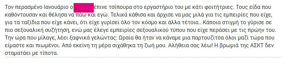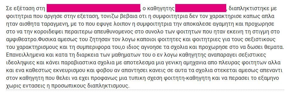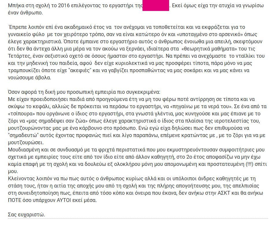 Και ακόμη έχουν αναρτηθεί και οι εξής καταγγελίες για καθηγητές της ΑΣΚΤ: