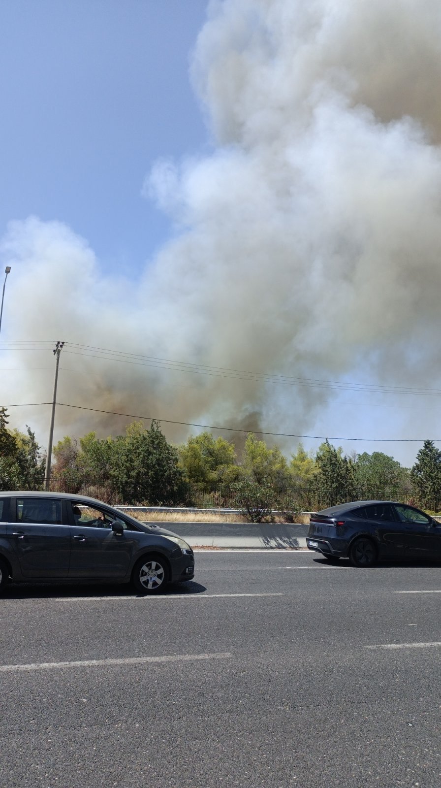 Η φωτιά ξεκίνησε σε χαμηλή βλάστηση, κοντά στην Πολυτεχνειούπολη στου Ζωγράφου, κάτω από την Αττική Οδό.