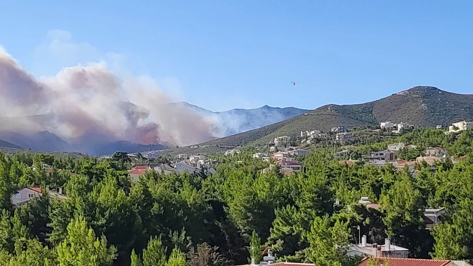 Μεγάλη φωτιά ξέσπασε στην Πεντέλη, η οποία κινείται απειλητικά προς το Ντράφι, για το οποίο δόθηκε εντολή εκκένωσης από το 112.
