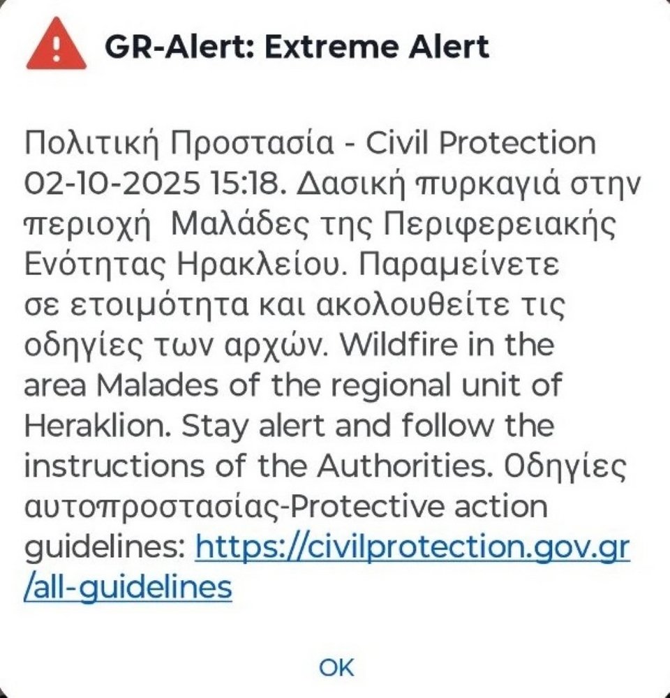 Λίγη ώρα αργότερα εστάλη μήνυμα από το 112 σε όσους βρίσκονται στις Μαλάδες, προκειμένου να είναι σε ετοιμότητα.