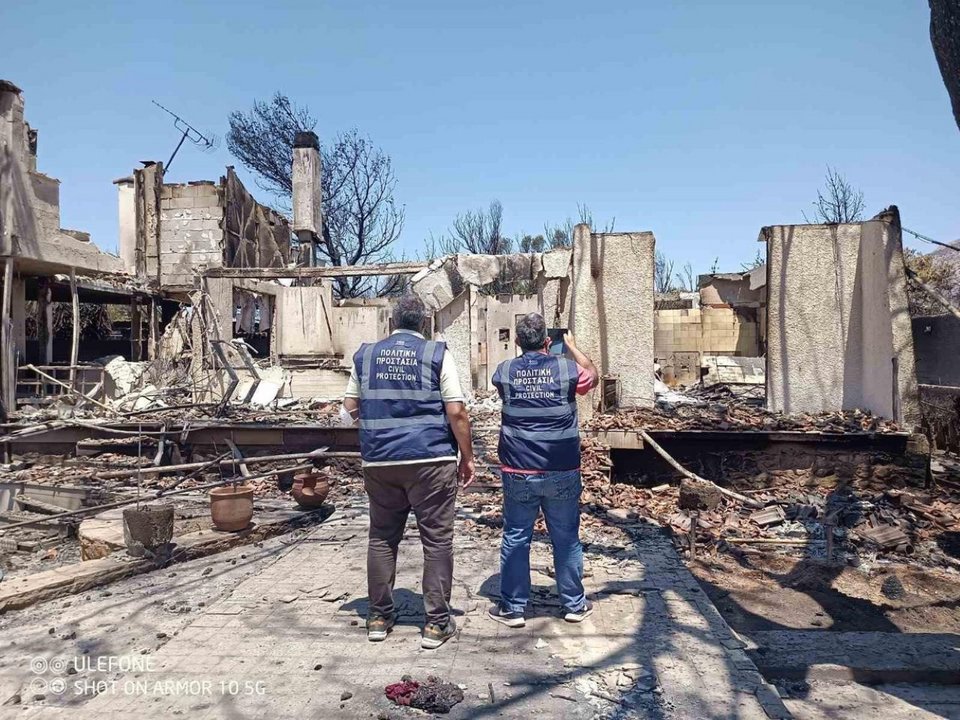 Κλιμάκια βρίσκονται στο πεδίο και πραγματοποιούν αυτοψίες σε όλο το εύρος της περιοχής που επλήγη από την μεγάλη πυρκαγιά της 17ης Ιουλίου.