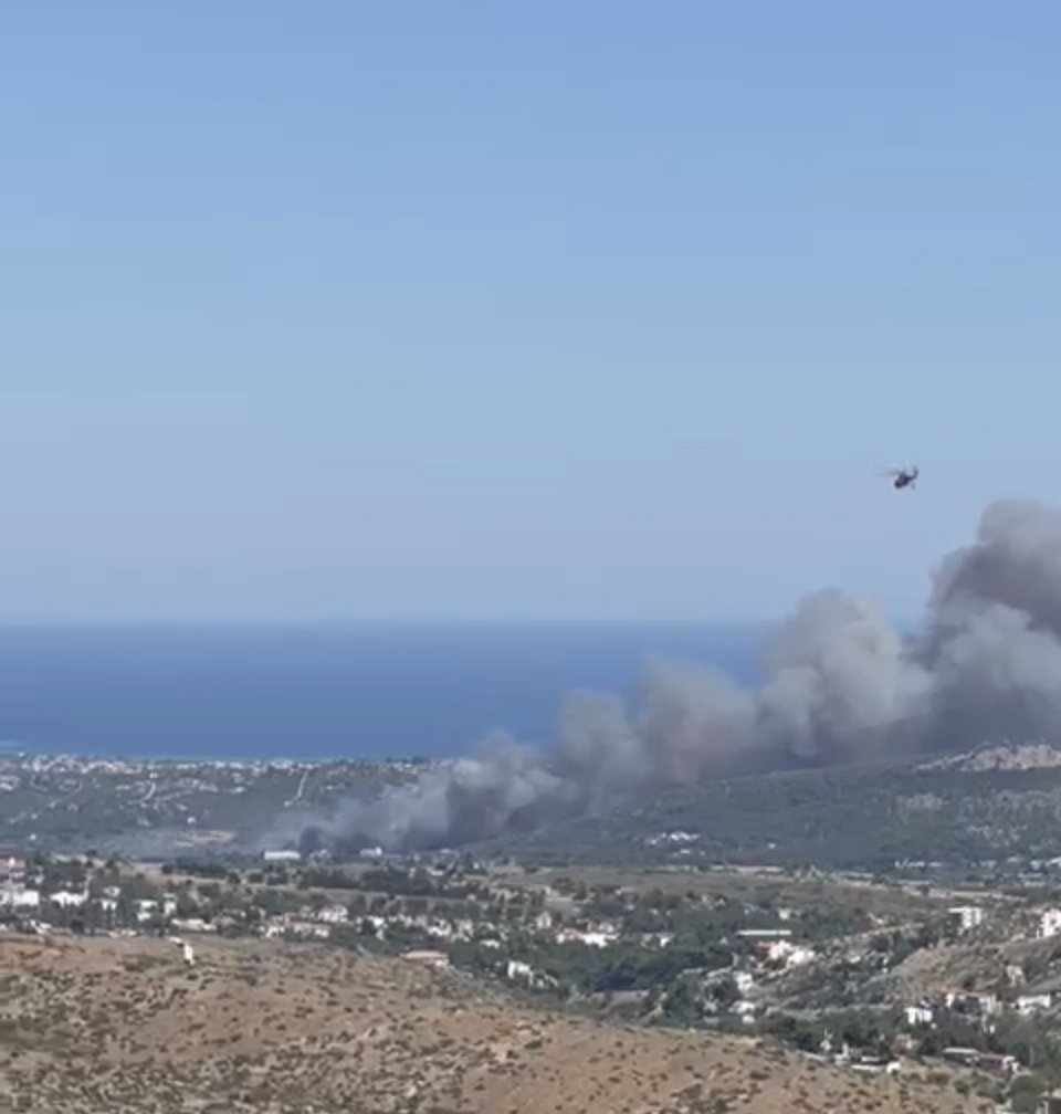 Φωτιά ξέσπασε σε χορτολιβαδική έκταση στον οικισμό Αγίας Κυριακής Ραφήνας.