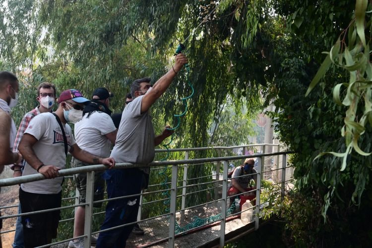 Πυροσβέστες με μάνικες, κάτοικοι με ποτιστήρια, λάστιχα ακόμη και πυροσβεστήρες, προσπαθούν να σώσουν τις περιουσίες τους. Κατοικίες, αποθήκες, αυλές, χωράφια, αυτοκίνητα ακόμη και δημόσια κτίρια έχουν παραδοθεί στο έλεος τη φωτιάς, με το πύρινο μέτωπο να συνεχίζει να εξαπλώνεται εξαιτίας των ισχυρών ανέμων.