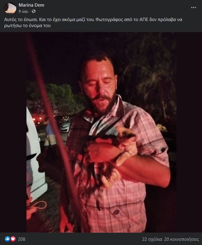 Στη συνέχεια, η δημοσιογράφος ανέβασε ένα post στο Facebook της και έγραψε το εξής: «Αυτός το έσωσε. Και το έχει ακόμα μαζί του. Φωτογράφος από το ΑΠΕ. Δεν πρόλαβα να ρωτήσω το όνομα του».