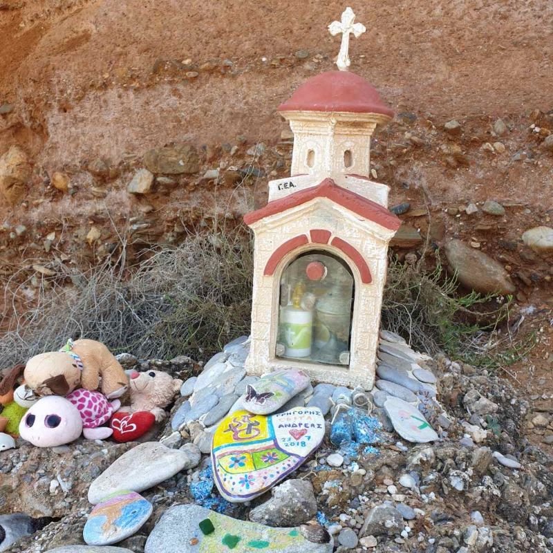 Στη ρίζα του βράχου, λίγα μέτρα μετά το ταβερνάκι της Αργυράς Ακτής, ένα μικρό εικονοστάσι είναι η σφραγίδα της συμφοράς που στις 23 Ιουλίου 2018, σάρωσε το Μάτι μετά το πέρασμα της φονικής πυρκαγιάς που είχε ως αποτέλεσμα να χάσουν τη ζωή τους 102 άνθρωποι.