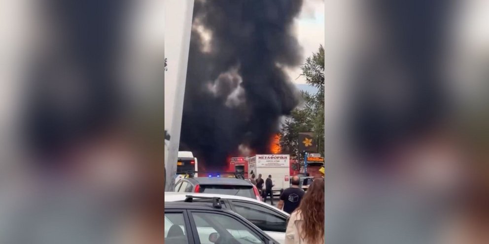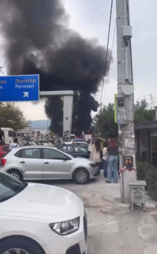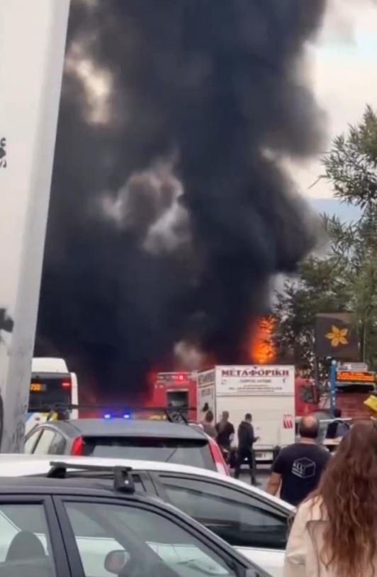 Φωτιά πήρε φορτηγό στη λεωφόρο Καβάλας στο ύψος προς Περιστέρι.