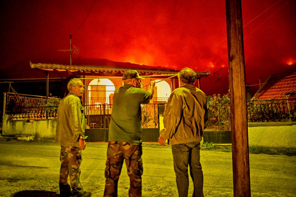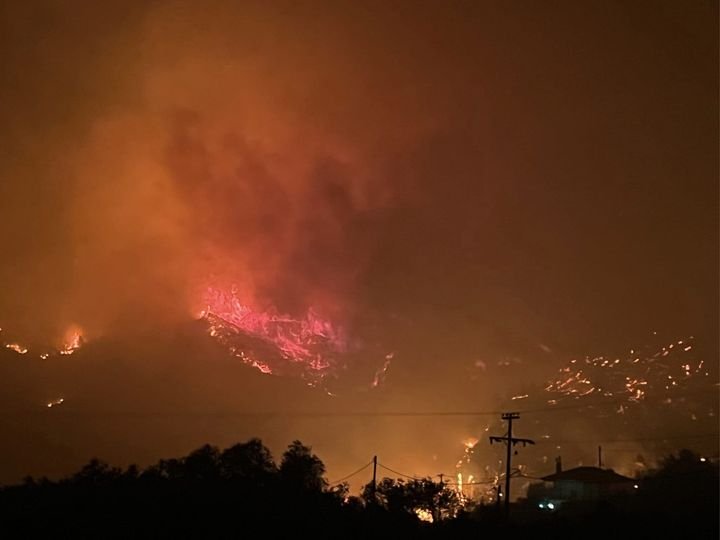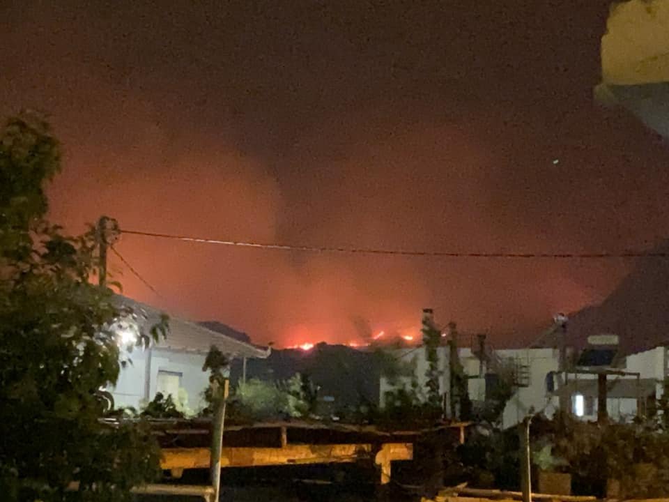 Πλέον, το μέτωπο της φωτιάς υπολογίζεται ότι φτάνει τα 30 χιλιόμετρα, ενώ τα ξημερώματα οι φλόγες πέρασαν στον οικισμό των Άνω Λουτρών.