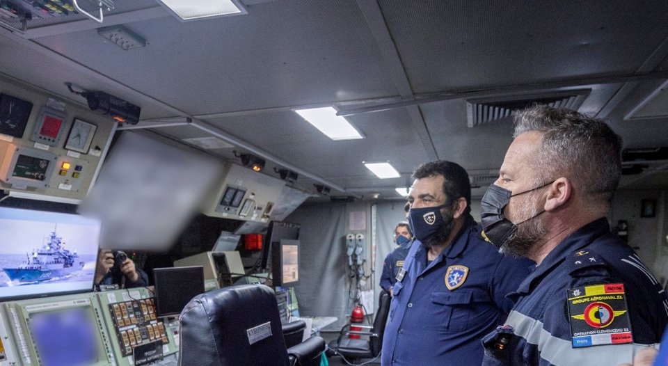 Ο Γάλλος διοικητής της Ναυτικής Δύναμης του αεροπλανοφόρου «Charles De Gaulle», υποναύαρχος Christophe Cluzel, επισκέφθηκε τη φρεγάτα «Ύδρα», την Κυριακή 13 Μαρτίου 2022.