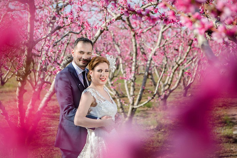 Ζευγάρια από τη Φινλανδία θέλουν τη γαμήλια φωτογράφισή τους στις ανθισμένες ροδακινιές