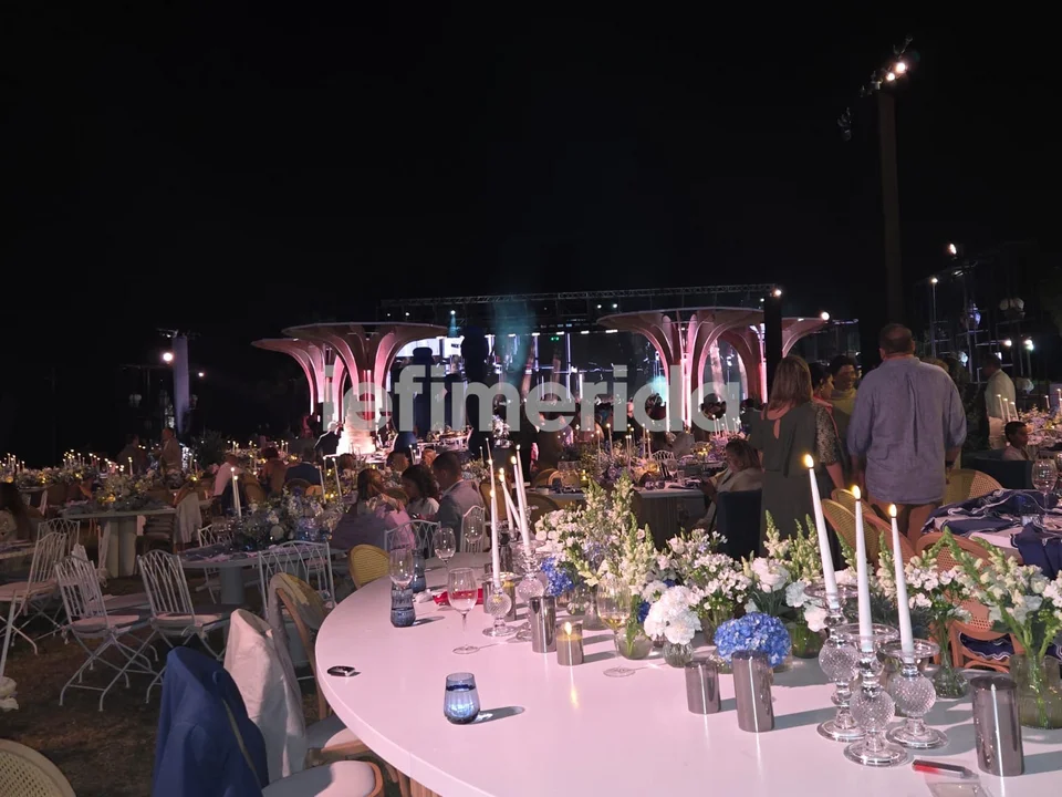 Η γαμήλια δεξίωση είχε οργανωθεί σε ένα παραμυθένιο σκηνικό στην περιοχή Ψαλίδι της Κω, στολισμένο με περίτεχνες λευκές και γαλάζιες ανθοσυνθέσεις γύρω από την εντυπωσιακή σκηνή, στην οποία εμφανίστηκε μπάντα από το Παρίσι. Ο χορός -με έμφαση στους λάτιν ρυθμούς, λόγω της καταγωγής της πλειονότητας των καλεσμένων- κράτησε μέχρι τις πρώτες πρωινές ώρες. Εκεί ήταν και οι τοπικές Αρχές, ο περιφερειάρχης Νοτίου Αιγαίου Γιώργος Χατζημάρκος, η έπαρχος Κω Κωνσταντίνα Σβύνου και ο δήμαρχος Κω, Θεοδόσης Νικηταράς, καθώς ο γάμος είχε μετατραπεί σε γιορτή για ολόκληρο το νησί και μια ευκαιρία να ταξιδέψουν εικόνες της Ελλάδας σε όλο τον κόσμο.