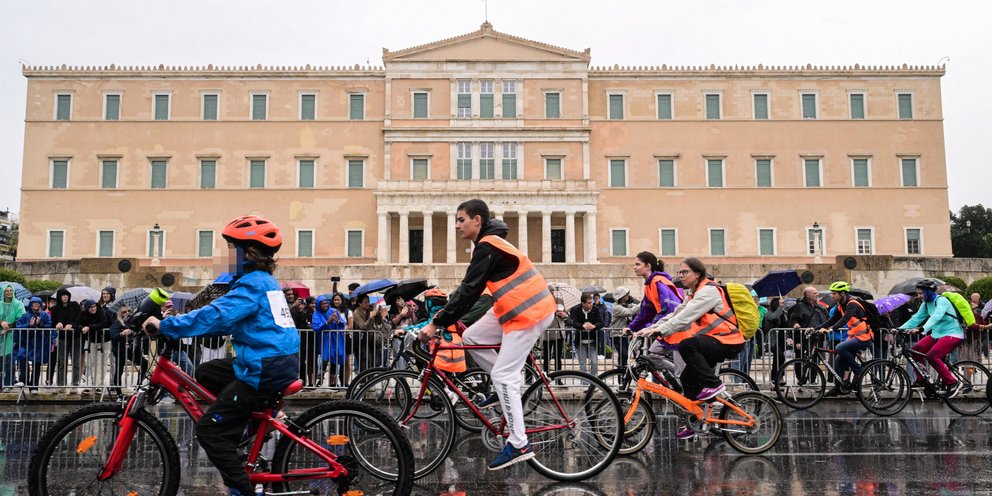 Δεν πτοήθηκαν από τη βροχή όσοι ήθελαν να συμμετάσχουν στο Ποδηλατικό Γύρο Αθήνας και με γέμισαν τους δρόμους της πόλης.
