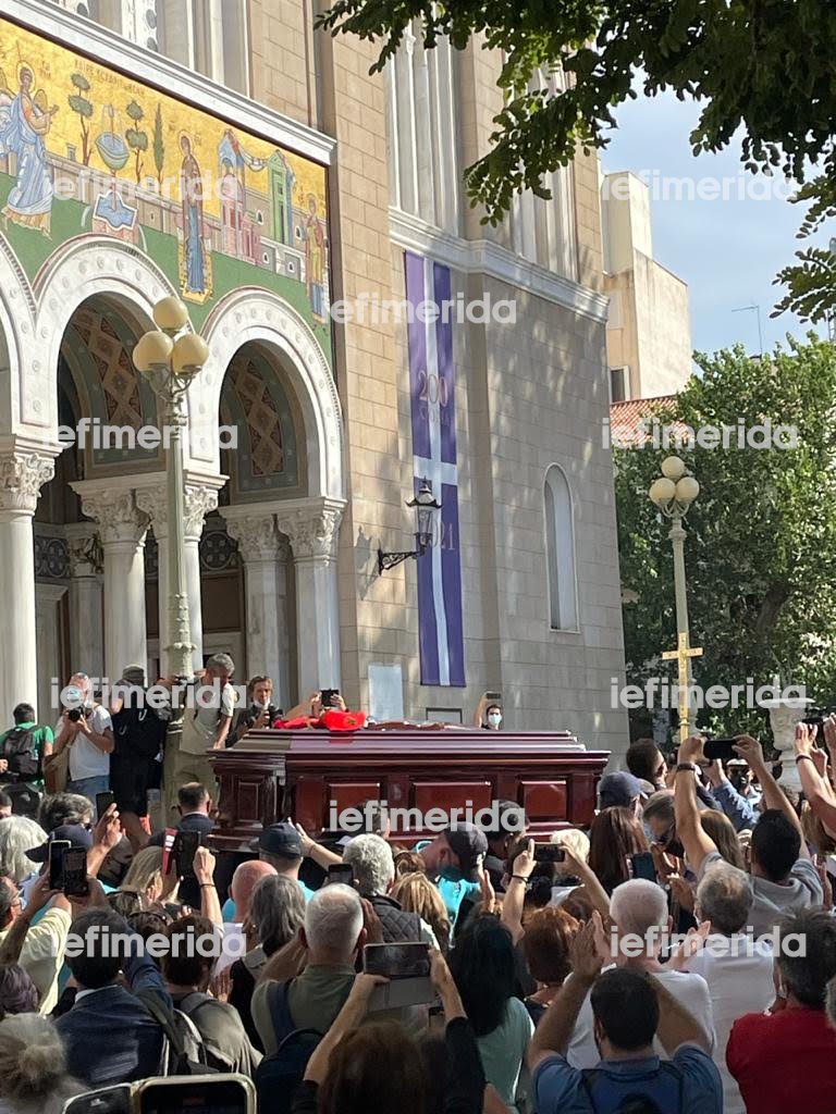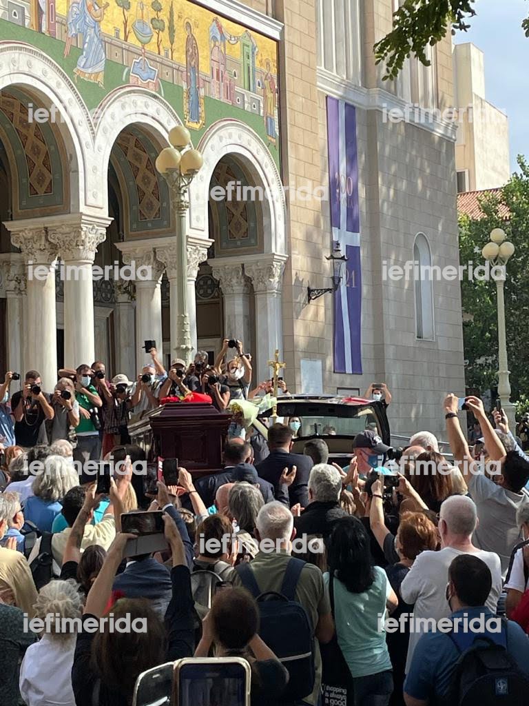 Με μιάμιση ώρα καθυστέρηση μεταφέρθηκε η σορός του Μίκη Θεοδωράκη στο παρεκκλήσι της Μητρόπολης, για να ξεκινήσει το λαϊκό προσκύνημα.
