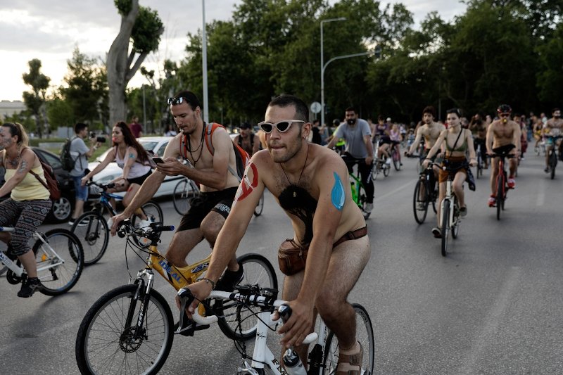 Το σύνθημα έναρξης για τη 13η Διεθνή Γυμνή Ποδηλατοδρομία στη Θεσσαλονίκη, από το πάρκο της ΧΑΝΘ. Δεκάδες άνθρωποι ανέβηκαν στο ποδήλατό τους και ξεχύθηκαν στους δρόμους της Θεσσαλονίκης. Με αυτόν τον τρόπο θέλησαν να πραγματοποιήσουν μια γιορτή διεκδίκησης για το Ποδήλατο, το Περιβάλλον και το Ελεύθερο Σώμα.
