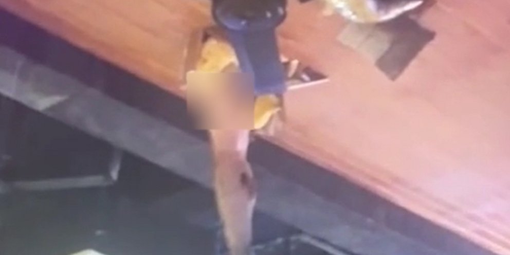 Το προσωπικό δήλωσε ότι άκουσε βογγητά και χτυπήματα στο δωμάτιο, μέχρι που είδαν τα πόδια του άνδρα να ξεπροβάλλουν από το ταβάνι ενός παρακείμενου ίντερνετ καφέ.