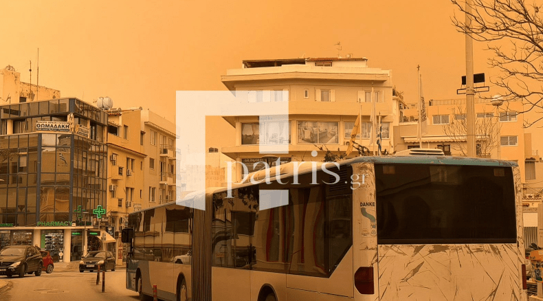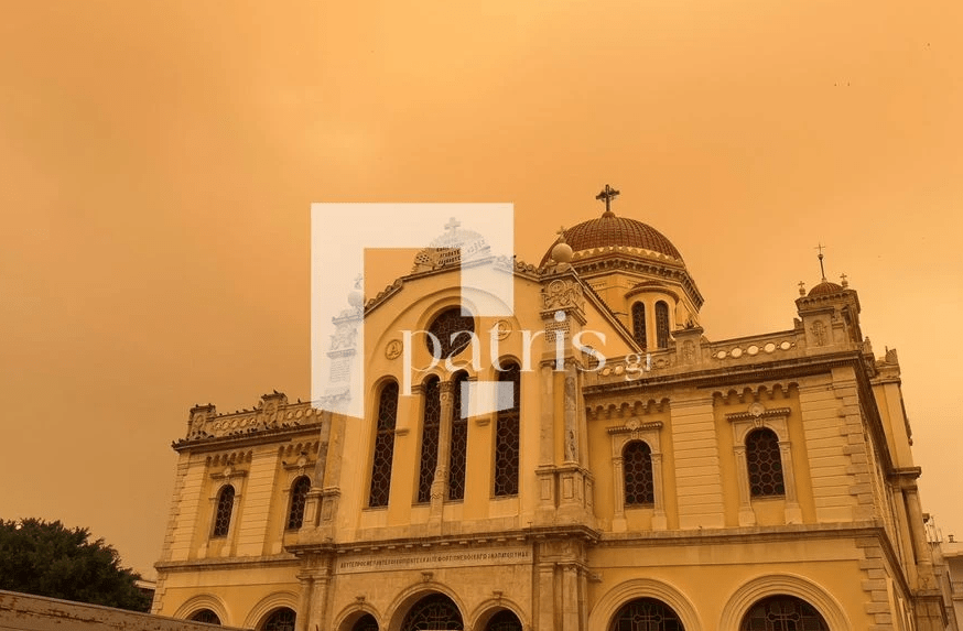 Ένα πορτοκαλί πέπλο έχει σκεπάσει όλη την περιοχή, καθώς σκόνη από τη Σαχάρα έχει μεταφερθεί λόγω των ισχυρών νότιων ανέμων που φέρνει η κακοκαιρία «Erminio».