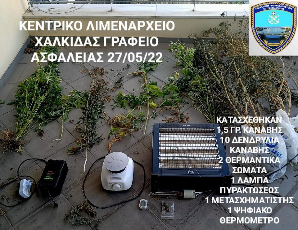 Το Λιμενικό συνέλαβε έναν 23χρονο για την καλλιέργεια κάνναβης μέσα στο σπίτι του, στη Χαλκίδα.
