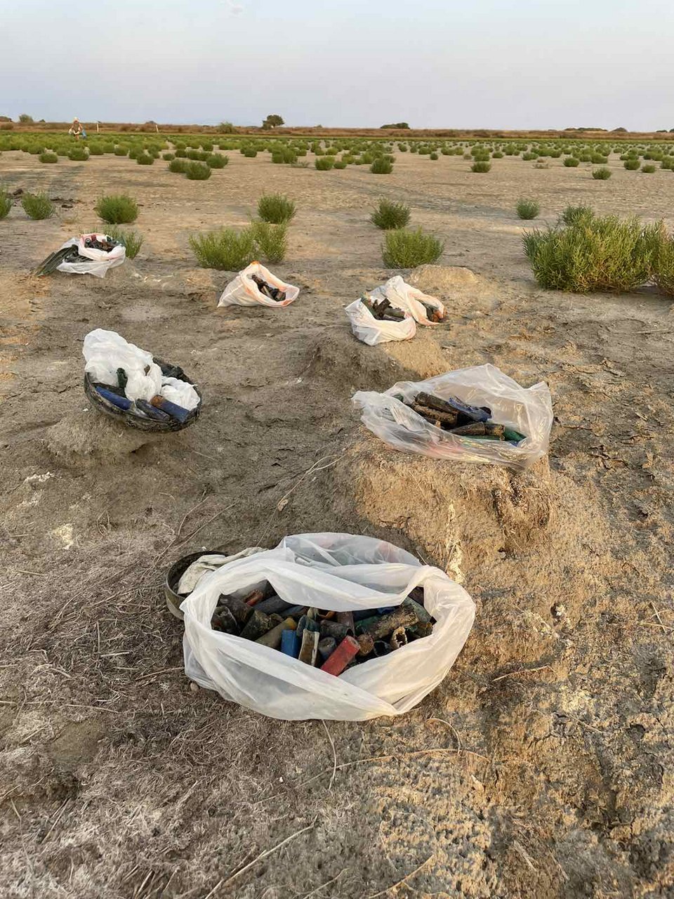 «Ενδεικτικό του προβλήματος είναι ότι κάποια βρίσκονταν στις φωλιές των φλαμίνγκο, αφού τα πουλιά, στην προσπάθειά τους να φτιάξουν τις φωλιές τους, μετέφεραν μαζί με τη λάσπη και τα φυσίγγια», λέει η κ. Καραγιάννη προσθέτοντας ότι με την ευκαιρία, μαζεύτηκαν κι άλλα σκουπίδια, αν και τα φυσίγγια ήταν η πλειονότητα των σκουπιδιών.