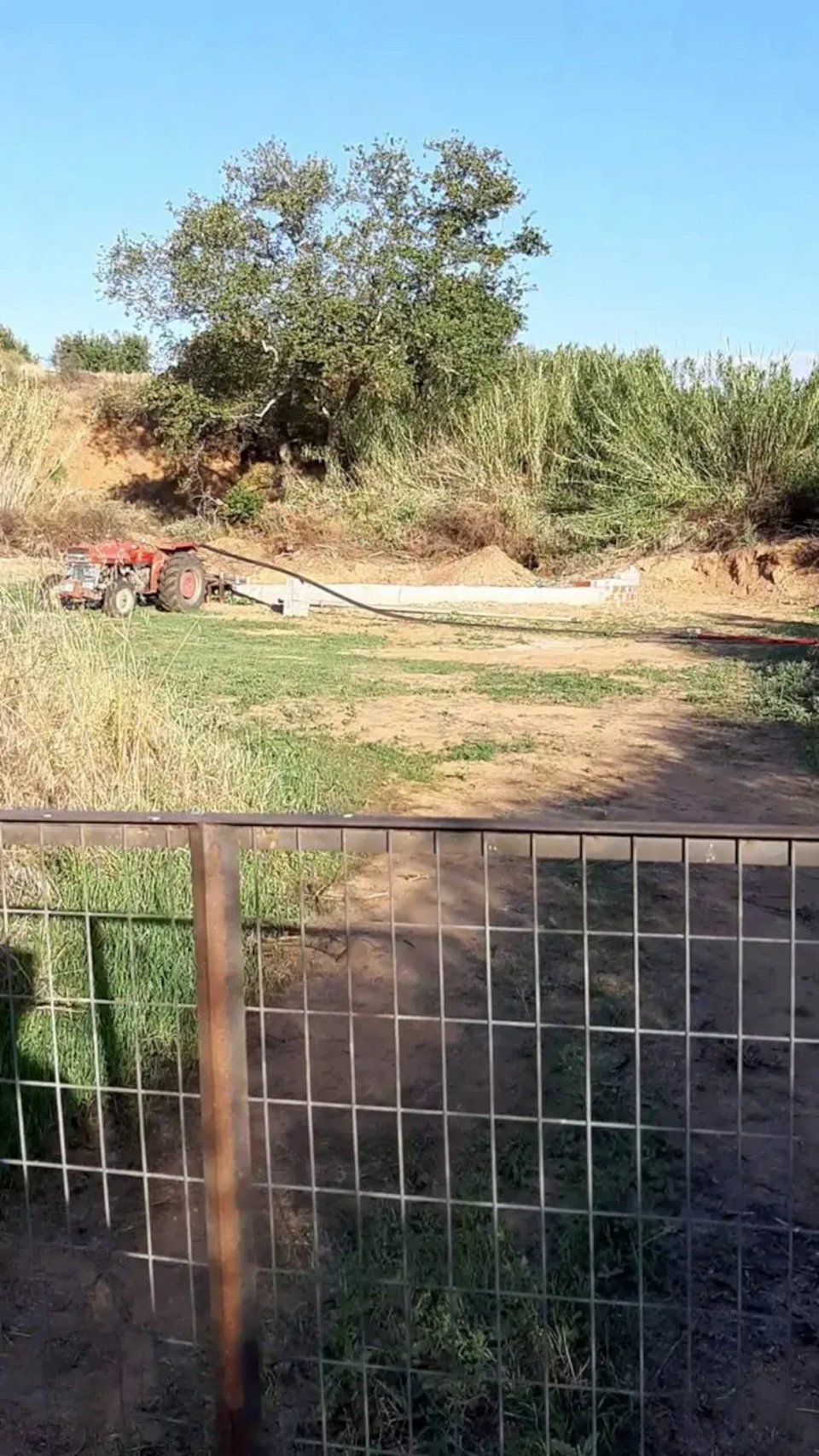 Επιπρόσθετα, έσκαψαν όλη την κοίτη και πέρασαν από κάτω μαύρη αρδευτική σωλήνα, της οποίας η μία άκρη κατέληγε στο πηγάδι και η άλλη σε αγωγό που οδηγεί σε δεξαμενή ιδιοκτησίας τους για την άρδευση χωραφιών τους.