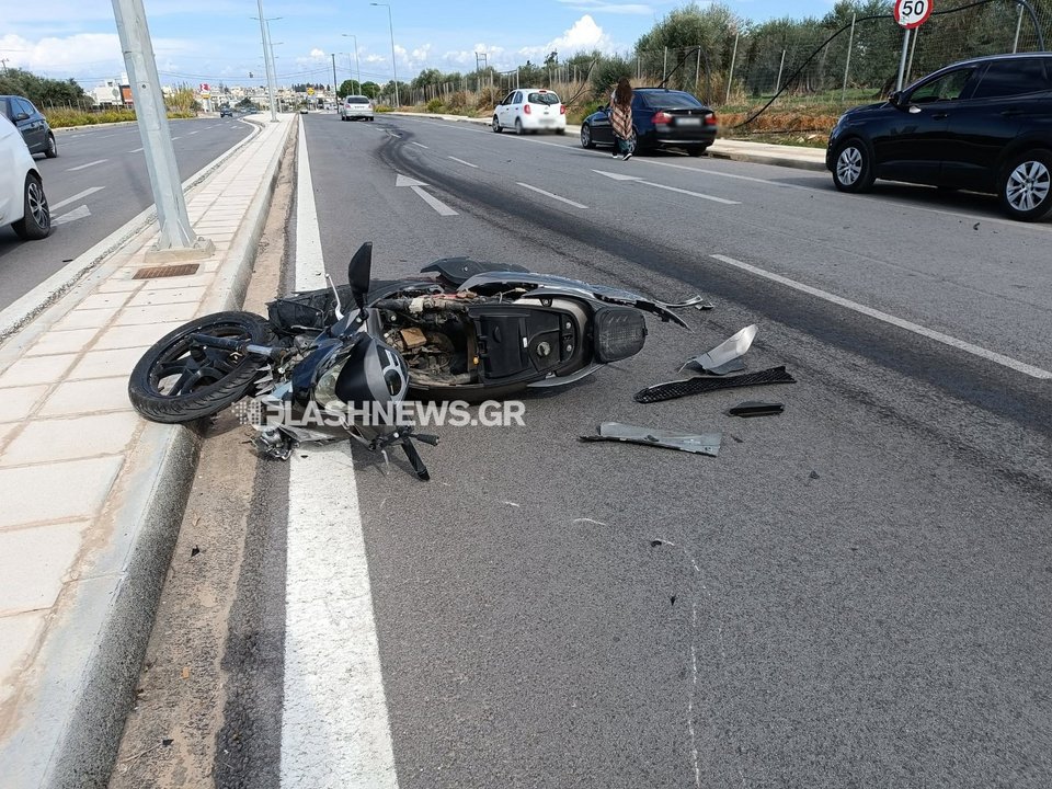 Τραυματίστηκε σοβαρά η οδηγός του μοτοσικλέτας -Έπεσε στο παρμπρίζ του ΙΧ κι έπεσε στο οδόστρωμα