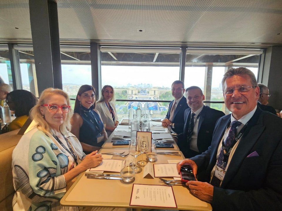 Ο Χάρης Δούκας παρακάθισε στο γεύμα που παρέθεσε η δήμαρχος του Παρισιού, Αν Ινταλγκό, στον Πύργο του Άιφελ.