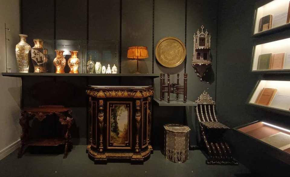 Οι αίθουσες με τη συλλογή από προσωπικά αντικείμενα και έπιπλα του ποιητή αντικατοπτρίζουν τις παραστάσεις στον προσωπικό του χώρο στην Αλεξάνδρεια. Ανάμεσα σε φωτογραφίες του ιδίου και της οικογένειάς του, βάζα, κορνίζες, ένα αντίγραφο των γυαλιών του, το γραφείο του και άλλα μικρά και μεγάλα αντικείμενα, ξεχωρίζουν έξι προσωπογραφίες του ποιητή από σύγχρονούς του καλλιτέχνες. Αντίγραφα των ποιημάτων του συνομιλούν με τα αντικείμενα του χώρου και μας μεταφέρουν στον κόσμο της καβαφικής ποίησης. Τα μόνα αντικείμενα που ο ποιητής δεν άγγιξε ποτέ, αλλά εκτίθενται στον χώρο, είναι η νεκρική μάσκα του, αλλά και η πρώτη έκδοση των καβαφικών ποιημάτων, σε φιλολογική επιμέλεια Ρίκας Σεγκοπούλου και εικονογράφηση Τάκη Καλμούχου, η οποία τυπώθηκε το 1935, μετά τον θάνατό του.