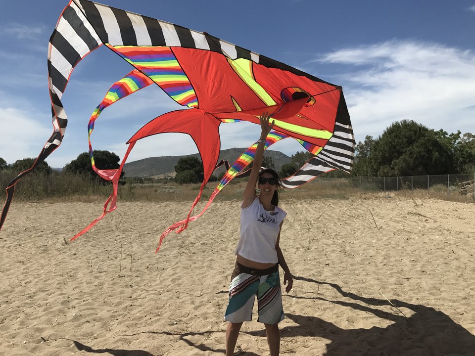 «Το χταπόδι (φωτογραφίες)» απαντά χωρίς πολλή σκέψη. Γιατί; «Διότι το χταπόδι "είναι" Αιγαίο. Κι όταν αυτός ο χαρταετός πετάει, τα πλοκάμια κινούνται στον ουρανό με τον ίδιο τρόπο που θα κινούνταν αν ένα αληθινό χταπόδι κολυμπούσε μέσα στη θάλασσα» λέει. Τι μπορείς να μάθεις πετώντας χαρταετό; «Υπομονή και ψυχραιμία. Ο χαρταετός δεν θα πετάξει όπως θέλεις όταν θέλεις, γιατί η πτήση του εξαρτάται από τον άνεμο και η φύση δεν υπακούει στη θέλησή μας. Αν πέσει, έπεσε και χρειάζεται να προσπαθήσεις ξανά. Επίσης, το πέταγμα του χαρταετού δίνει πολύ μεγάλη ώθηση στη φαντασία. Υψώνεις το κεφάλι προς τον ουρανό, βλέπεις μακριά, αλληλεπιδράς με κάτι που συνδέεται μαζί σου, αλλά βρίσκεται στον αέρα, αναπνέεις σωστά, είσαι 100% παρών σε αυτό που κάνεις» επισημαίνει και προσθέτει ότι για όλους αυτούς τους λόγους, θεωρεί το πέταγμα του χαρταετού εξαιρετική δραστηριότητα για παιδιά.