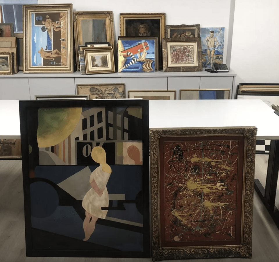 Οι αστυνομικοί της Υποδιεύθυνσης Καταπολέμησης Διακίνησης και Εμπορίας Ανθρώπων και Αγαθών, κατά την έρευνα στο λογιστικό γραφείο του επιχειρηματία, το πρωί της Τρίτης 25/11 εντόπισαν 439 έργα τέχνης - πίνακες ζωγραφικές και δύο έγγραφα πιστοποιητικών γνησιότητας.